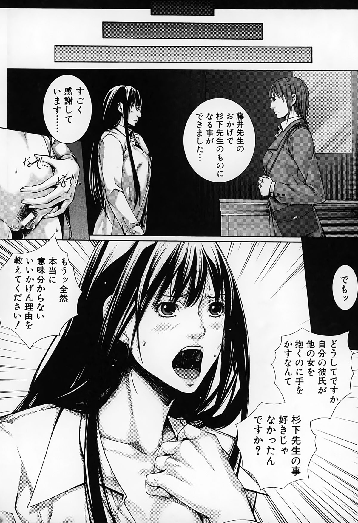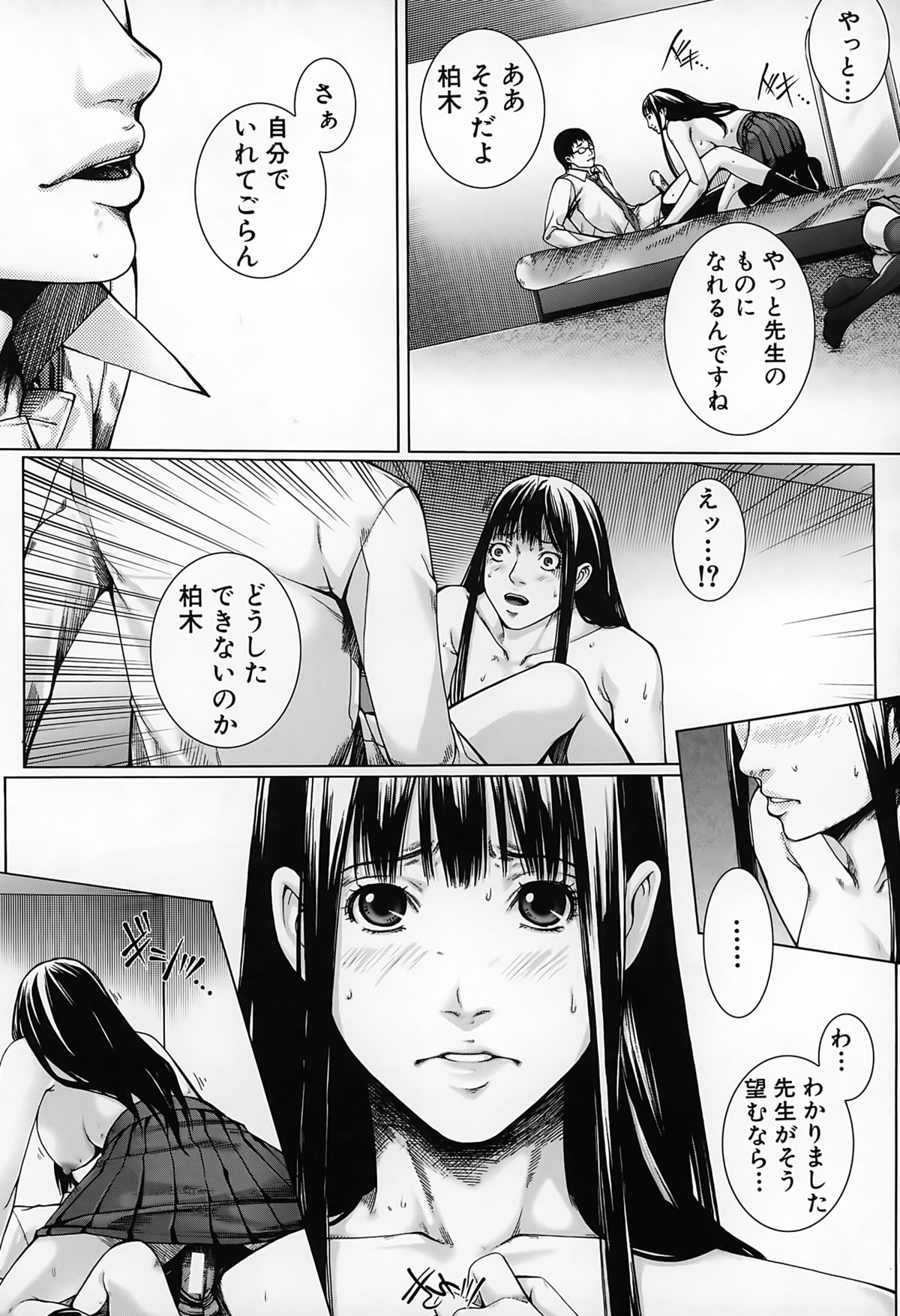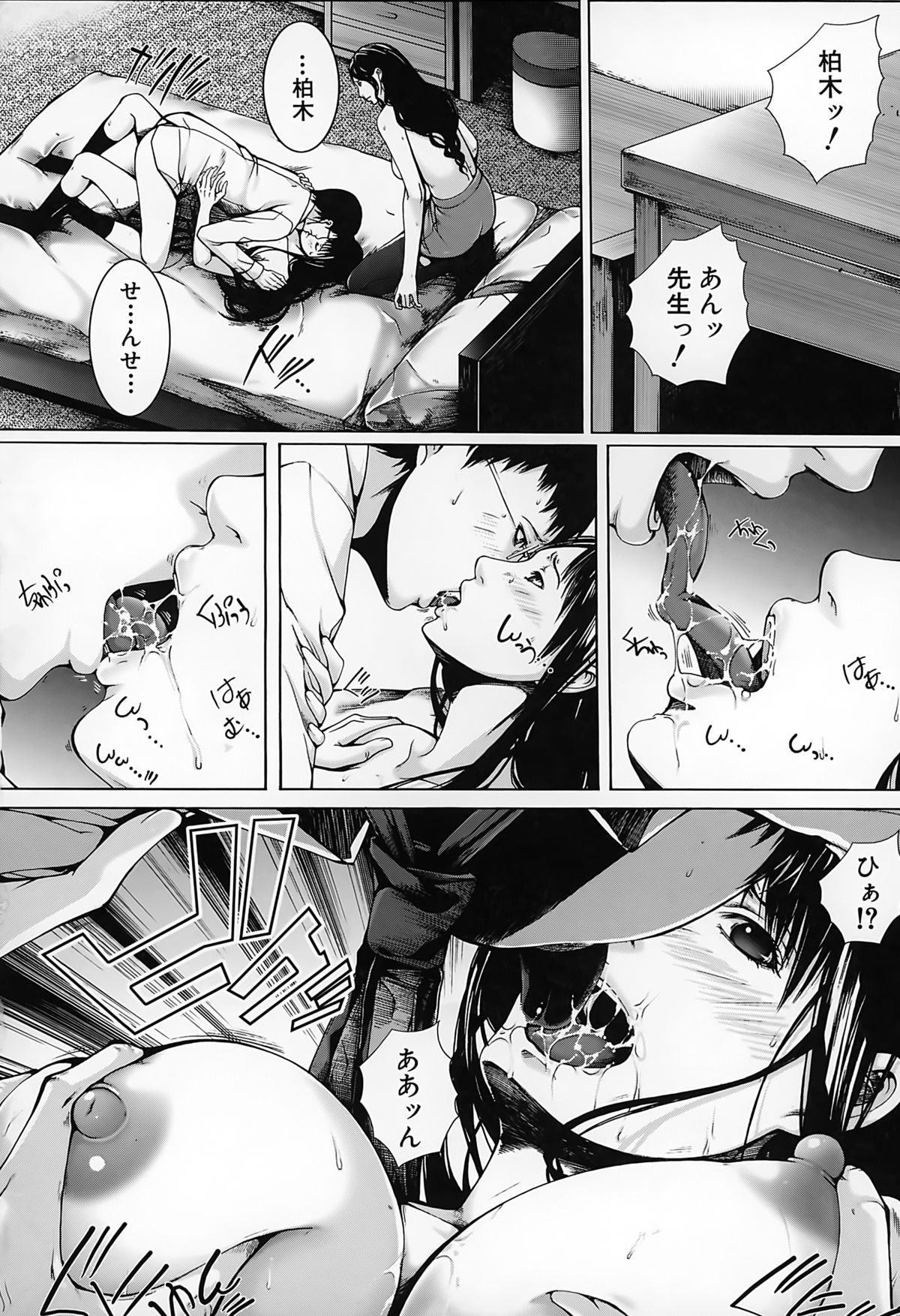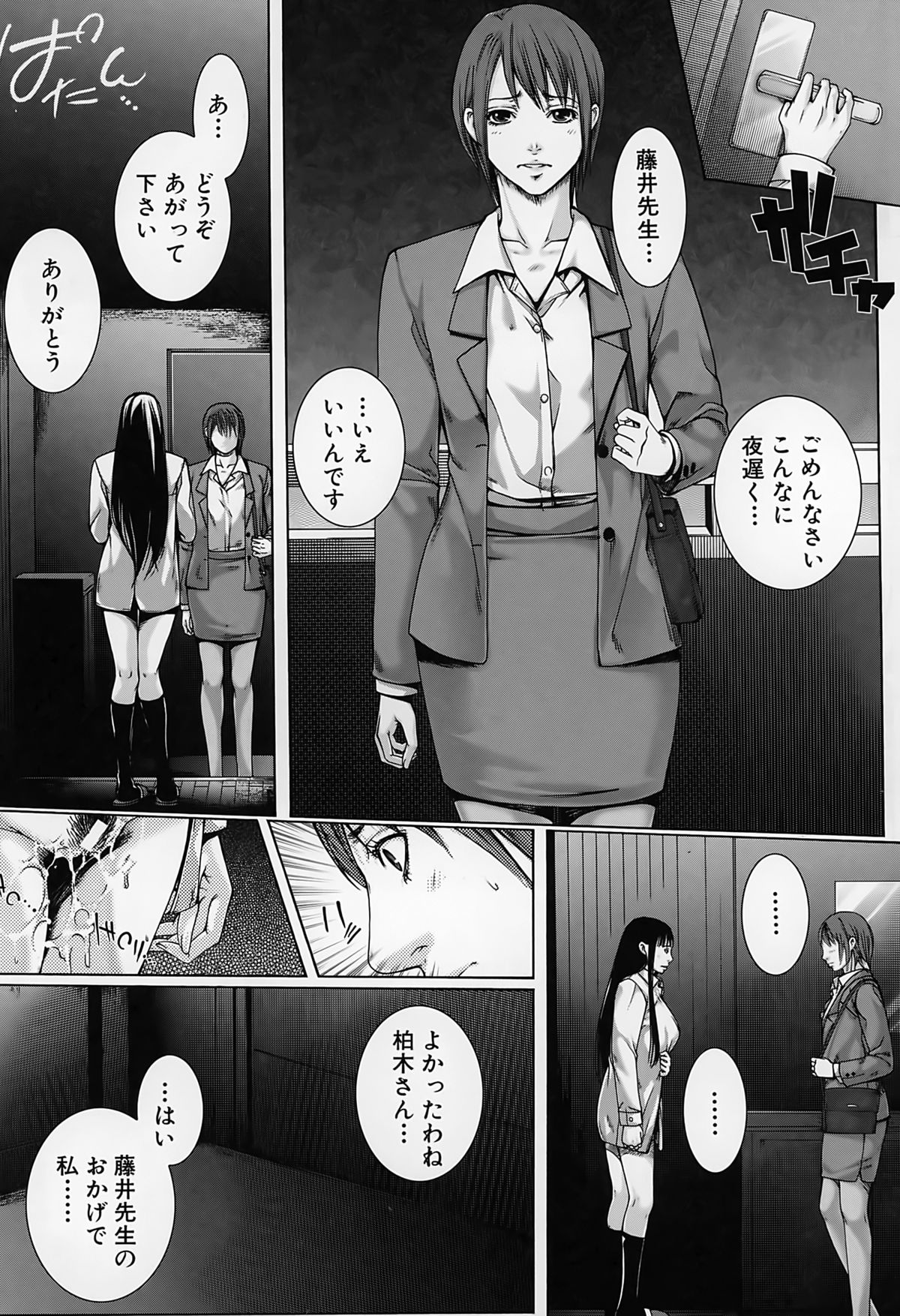 【エロ漫画】JKの母親同伴で、JKの巨乳を堪能したり母親にフェラチオされて口内射精する先生。JKに自分で処女喪失させて騎乗位セックス。母親も参加してきて、爆乳を揉みしだきながら母娘丼3Pセックスして皆で絶頂。母娘と女教師の三人を性奴隷にして、皆に奉仕させてハーレムセックス!【ハスミヒロ:M³】
